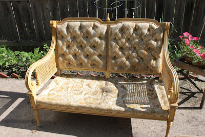 Then this weekend I finished up with natural colored gimp trim and my trusty mini hot glue gun (and yes! it's totally legal in upholstery).